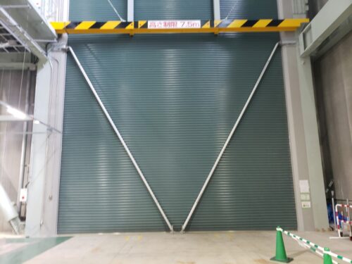 福岡県北九州市某所、大型シャッターガードV型手動式内外設置